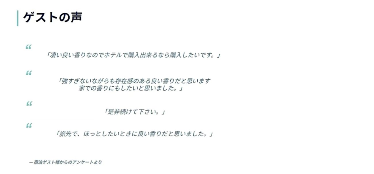 客室のドアノブやクローゼットのハンガーに掛ける、枕元に置く、あるいはデスクの引き出しに忍ばせる。ゲスト自身が「どこで香らせるか」を決めることで、パーソナルな時間が演出されます。